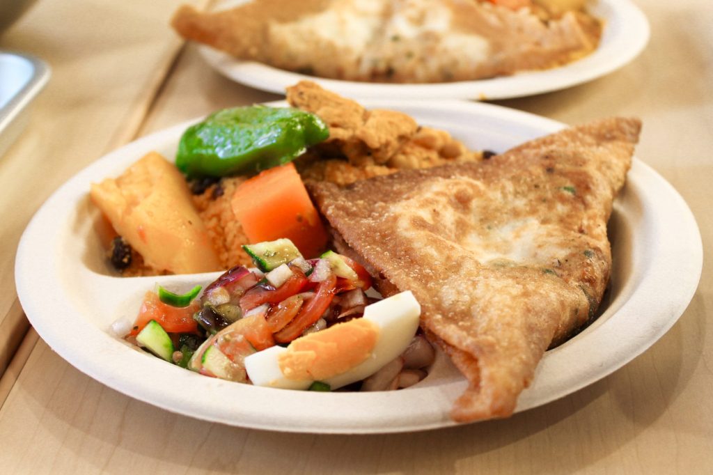 メニューは、クスクスとトマト煮込み、包み揚げ(ジャガイモ、ツナ、パセリを混ぜ、春巻きの皮にのせ、生卵を落とし、包んで揚げた)、レモンドレッシングのサラダ。