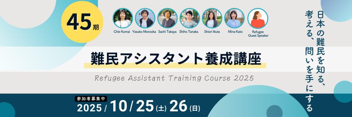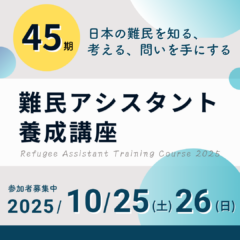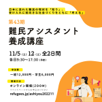 【ニュースリリース】日本の難民を包括的に学ぶ「45期 難民アシスタント養成講座」内容リニューアルで2年ぶり10月開催!