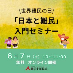 日本に逃れてきた難民について”ちょっと気になる”を歓迎する入門編のオンラインセミナーを開催します。 参加費無料。特別な知識は不要です。 知ることから始めてみませんか。お気軽にお申込みください。