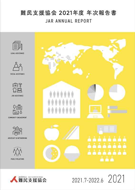 年次報告書2021年版(2021年7月〜2022年6月)を発行しました。2022.11.14難民支援協会の2021年度(2021年7月から2022年6月までの1ヶ年)の年次報告書を発行しました。 A4版(全16ページ)に加え、ダイジェスト版も作成しています。こちらからご覧ください。関連記事:年次報告書2023年版(2023年7月〜2024年6月)を発行しました。 2024.11.15年次報告書2022年版(2022年7月〜2023年6月)を発行しました。 2023.11.15難民支援協会の活動は皆さまからの ご寄付で成り立っています。あなたのワンアクションが、 難民の命と未来を支えます。寄付で支える