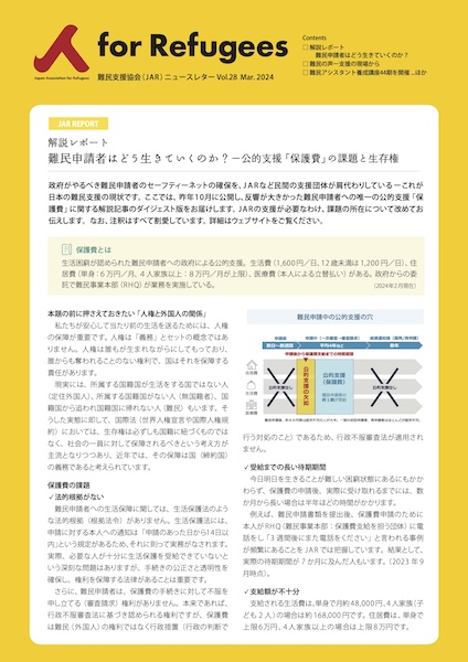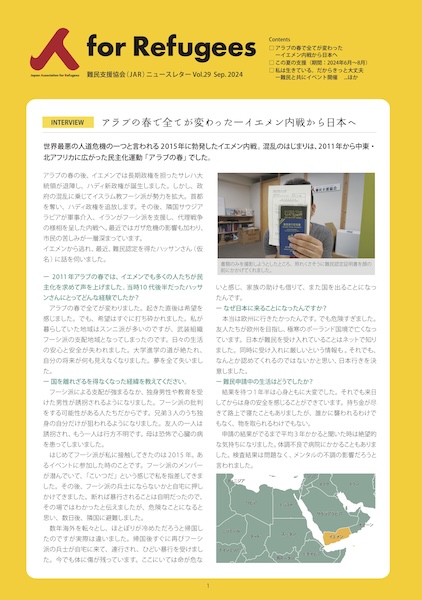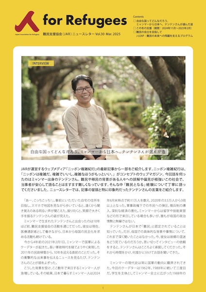 難民支援協会(JAR)では、年に2回、当会の活動や難民の状況をお伝えするニュースレター”for Refugees”を発行しています。