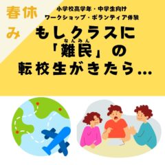 春休み企画 | 小学校高学年・中学生向けワークショップ・ボランティア体験「もしクラスに難民の転校生がきたら…」