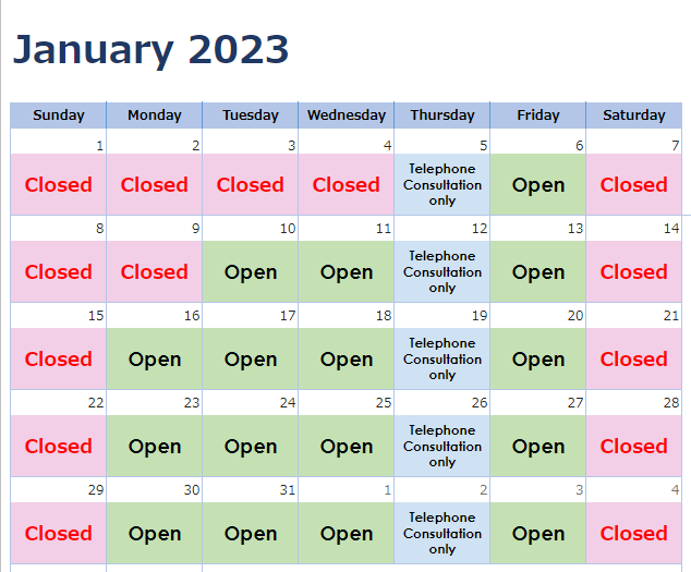 Immigration Bureau and Public office will be closed from December 29 until January 3. They will also be closed on January 9.