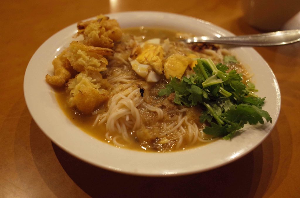 選んだ料理がたまたまそうだったのかもしれないが全体的にスパイシーで辛口な味付けだった。とくにトムヤムクンに似た味付けの鶏肉のスープが辛くて辛くてひーひー言いながら食べた。やはりタイとの地理的な近さを感じさせる。味は間違いなし。