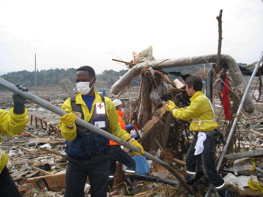 「被災地のために何かしたい」「現地に行って困っている人を助けたい」。震災直後からJARには、難民たちのそんな声がたくさん寄せられました。JARとしては、「そもそも被災地に行くのか、被災地で何ができるのか」と、まだ足踏みをしている段階でした。そんな中、仲間とともに被災者への募金活動を行ったり、いち早く「被災地に行く」と名乗りを上げたのが難民たちでした。