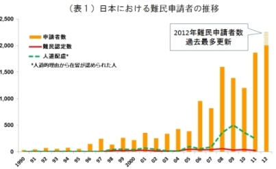 認定NPO法人難民支援協会が把握する限り、2012年の日本での難民申請数が2,100人を超えたことが分かりました(表1)。過去最多を記録した昨年を大きく上回る難民申請者の増加を背景に、多くの難民申請者が、セーフティネットから抜け落ち、路上生活を余儀なくされています。申請数増加による影響やそれに応じる難民支援協会の活動について、ぜひご取材をお願いします。