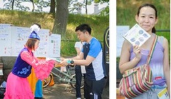 当日は、朝から気温があがり、炎天下での開催となりました。皇居の周回コースでは、ボランティアが民族衣装を着て、多言語で書かれた「がんばれ!」のボードを持ち、ランナーにエールを送りました。また、「この数は何?」と数字の意味を考えながら難民について学べるクイズも用意し、参加者の方に楽しんでいただきました。