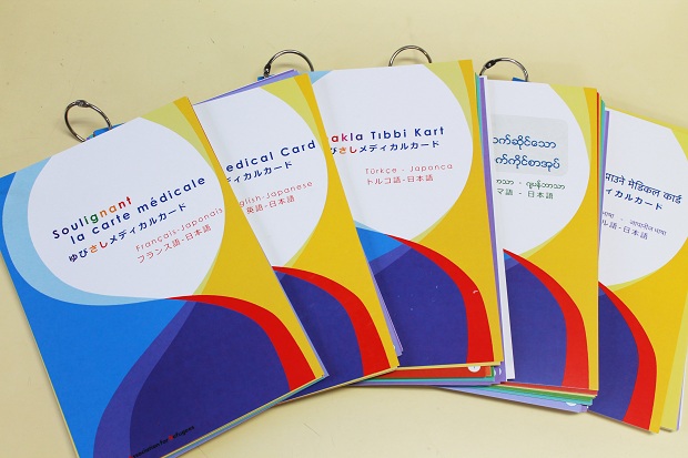 専門的な言葉が多く、日常会話ができる在住外国人であっても苦労する病院での受診。在住外国人は増加していますが、病院でのコミュニケーションは課題です。トルコ出身の少数民族クルド難民が多く暮らす地域の病院からも、言葉の壁から適切な診察ができず、どのように対応していけばよいものか悩んでいるとの声が寄せられていました。そこで難民支援協会(JAR)は、難民・病院の双方と協力して「ゆびさしメディカルカード」を開発しました。病院で必要なコミュニケーションをゆびさしで伝えることができます。英語、ビルマ語、仏語、トルコ語、ネパール語の5言語で作成。仏語はアフリカの仏語圏出身の難民から、トルコ語はクルド難民からニーズが高く、活用が期待されます。