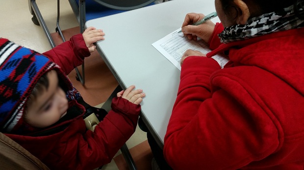 カードによって、JARスタッフや通訳の付き添いがなくても、一人で病院に行きやすくなります。医療へのアクセスという観点からだけでなく、小さなことであっても異国の地で自立して何かを達成するということは、その社会の一員として生活していく自信につながります。さらに今回のプロジェクトは、難民のニーズに応えるだけでなく、地域の受け入れる力を強化することも目指して企画しました。JARは今後も日本に逃れてきた難民が自立した生活を安心して送るための環境づくりに取り組んでいきます。(写真下:ワークショップに参加する母子)
