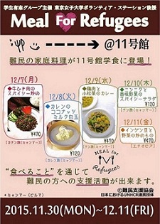 11月30日から12月11日までの2週間、東京女子大学でM4Rを実施しました。特に人気があったのは、ミャンマー(ビルマ)・カチン民族の「牛ひき肉のスパイシー炒め」と、チン民族の「鶏肉と小松菜のカレー」でした。