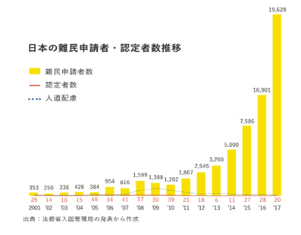 毎年20人程度しか認定されないことから分かるように、日本の難民認定数は先進国と比べて非常に少ないのが現状です。