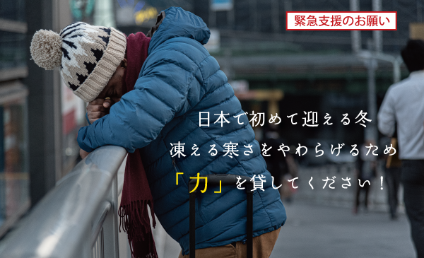 支援を求めて私たちのもとを訪れる方々に応え続けられるよう、そして、ホームレスとなる人を一人でも少なく、またホームレスとなってしまった方もせめて日中は暖かい事務所で安心して過ごし、仮眠と食事をとって越冬できるよう、皆さまのご支援をお願いいたします。