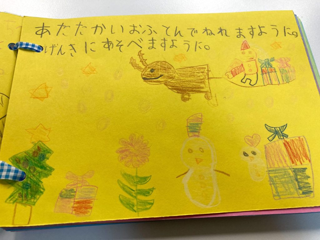 幼稚園児たちが難民の子どもたちのことを想い、お祈りの気持ちを言葉にして送ってくれました。地域の商店街で、難民のための募金集めにも取り組んでくれました。もしかしたら、「ほしい物を我慢しなくちゃいけないかも」と、難民の子どもたちの置かれた状況を想像しながら、頑張ってくれたそうです。