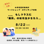 2024年8月22日、小学校高学年向けワークショップ・ボランティア体験「もしクラスに難民の転校生がきたら…」を開催し、6名の小学生が保護者の方と共に参加してくれました。