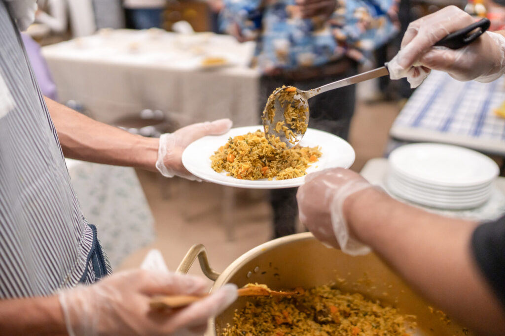 難民の人たちは、 それぞれ張り詰めた思いを抱えて日々を過ごしています。そんな中スタッフ同士で相談をし、「少しでも心温まる時間を過ごしてほしい」という思いから、難民の人たちを招いて、ランチ交流会を企画しました。