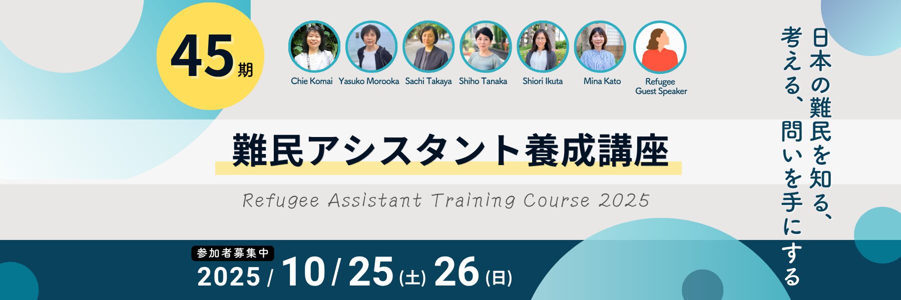 難民アシスタント養成講座に、お申し込みありがとうございました。