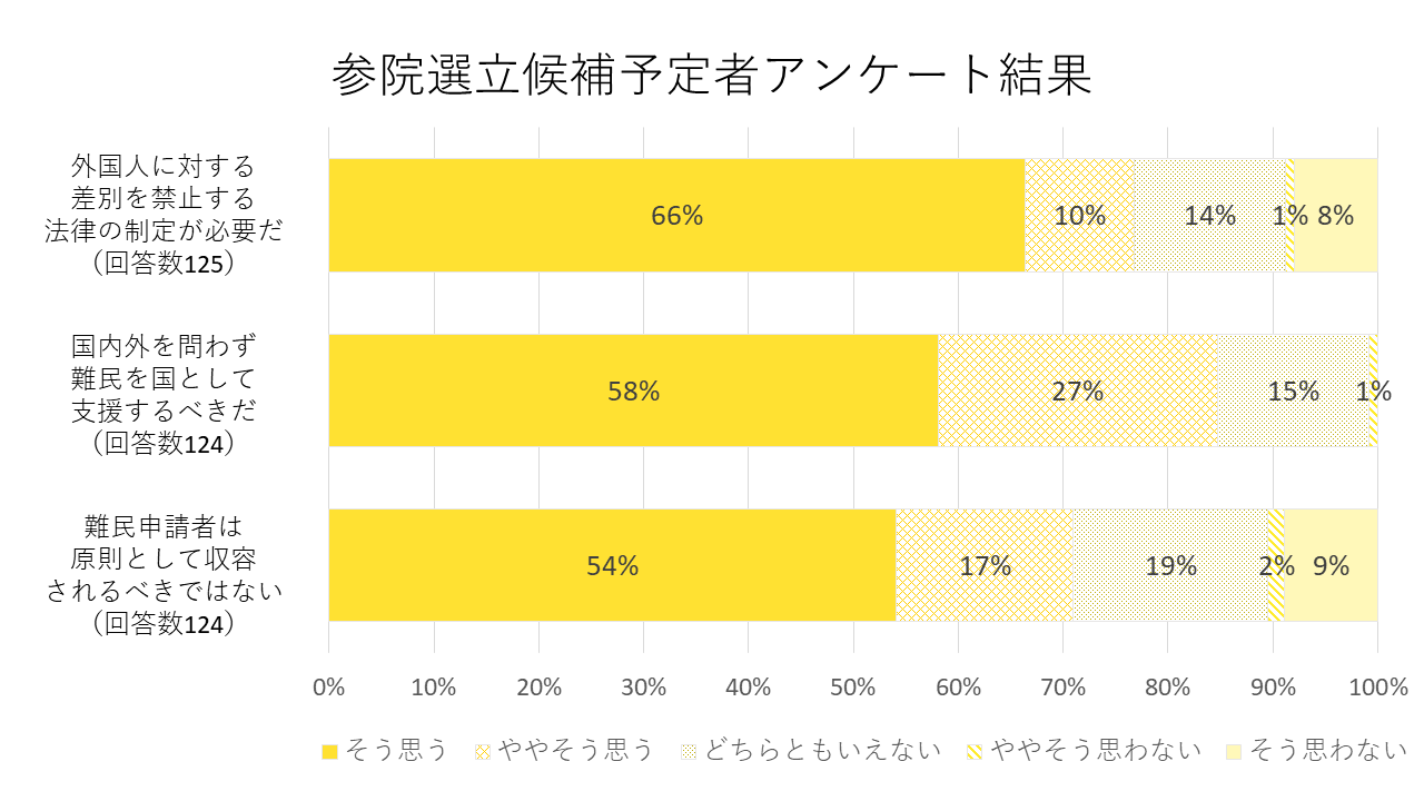 公益社団法人アムネスティ・インターナショナル日本が実施した人権課題に関する「参議院議員選挙立候補者アンケート」より、外国人・移民・難民に関する質問への回答結果をご紹介します。