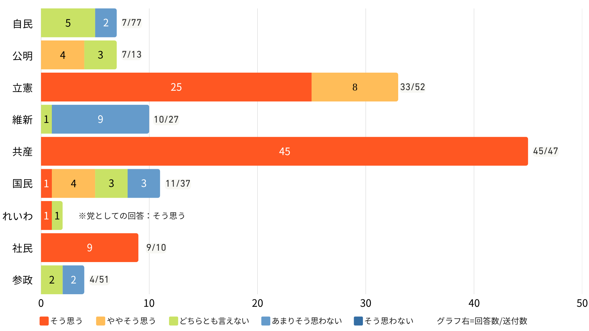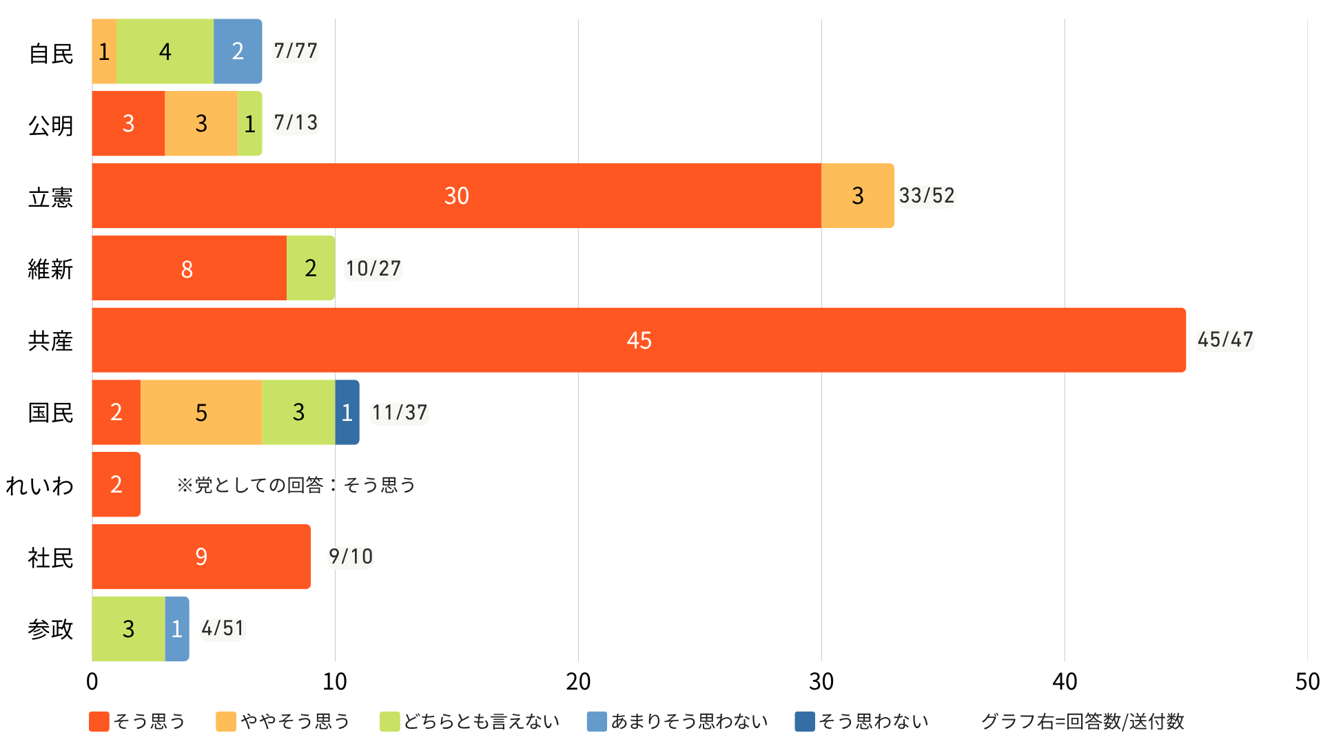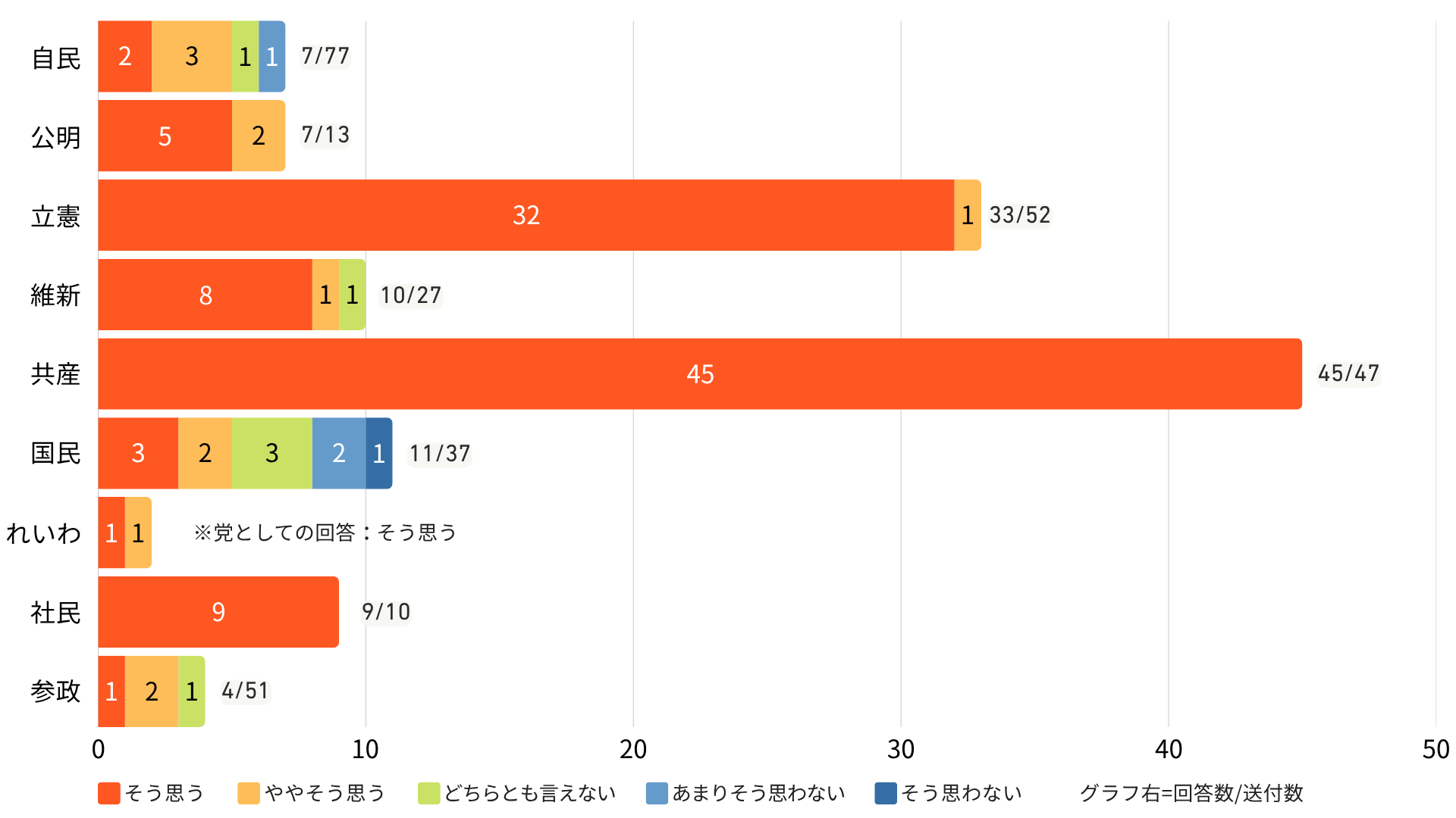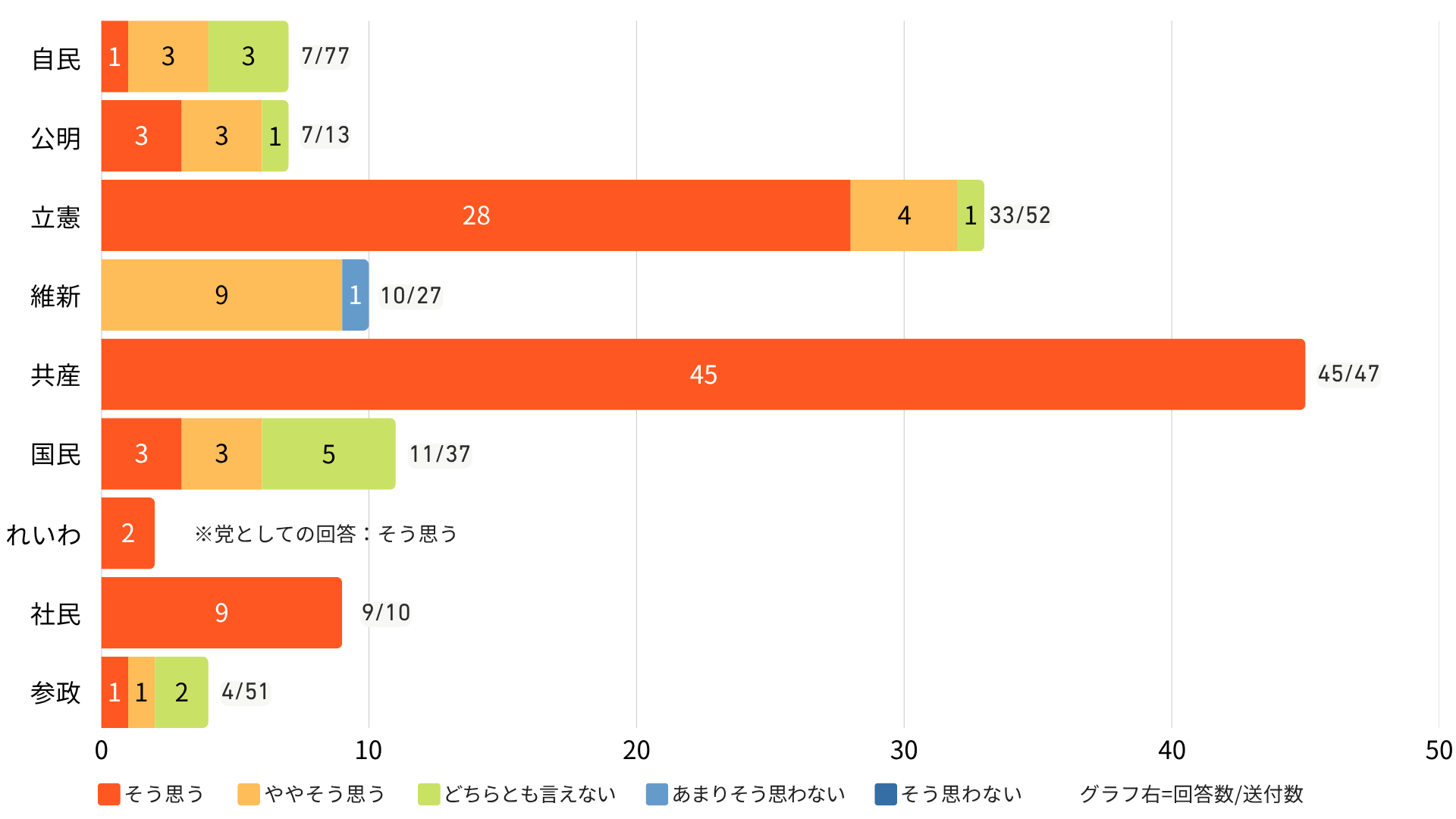 ※ 棒グラフに記載した数値は、各党・各回答への回答数