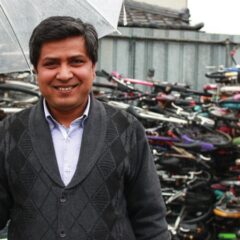 写真:経営するリサイクル会社の前で 昨年5月、数千人にのぼる人々を乗せた複数の木造船が海上で漂流を続けた。密航業者は逃亡...
